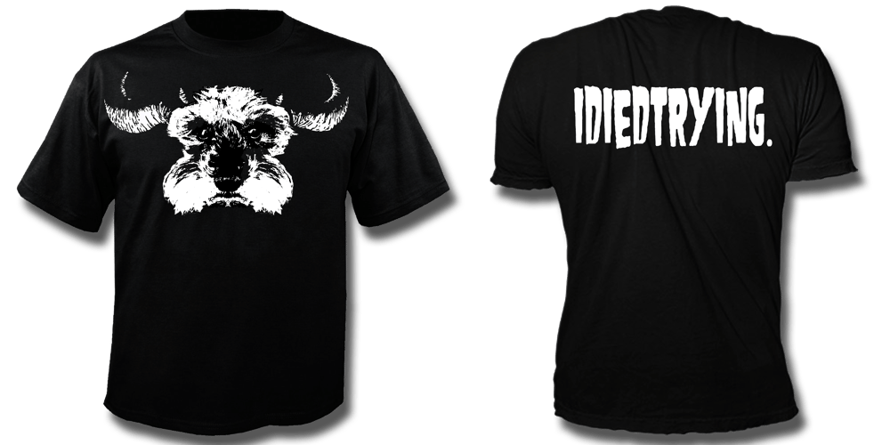 Commemorating 20 years of blood, sweat & slobber with this rad design. Printed in white with an additional print of GLOW IN THE DARK INK! The print will appear white in the light but in the dark it will glow GREEN!!!!! I had been wanting to do a glow in the dark shirt for a very, very long time. I'm so stoked to see another dream become a reality.